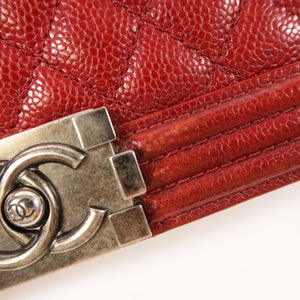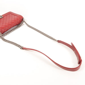 CHANEL CC SHW Boy 25 Chain Shoulder Bag Calfskin Leather Red