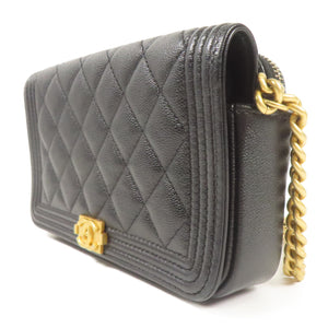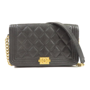 CHANEL CC GHW Boy Chain Shoulder Bag Calfskin Leather Black