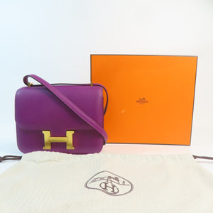 HERMES GHW Constance Mini Shoulder Bag Evercolor Leather Anemone