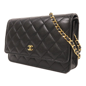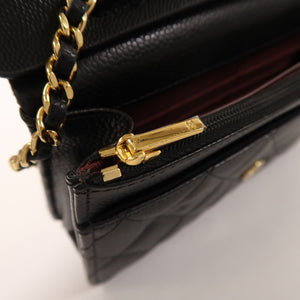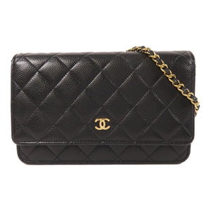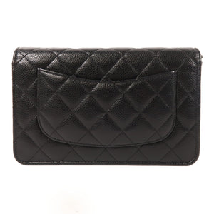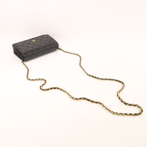 CHANEL CC GHW WOC Wallet On Chain Shoulder Bag Calfskin Leather Black