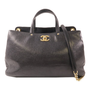 CHANEL CC GHW 2 Way Shoulder Bag Handbag Calfskin Leather Black