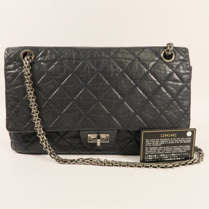 CHANEL CC SHW 2.55 Medium Chain Shoulder Bag Calfskin Leather Dark Navy
