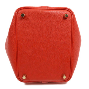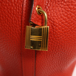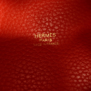 HERMES GHW Picotin PM Tote Bag Clemence Leather Rouge Tomate