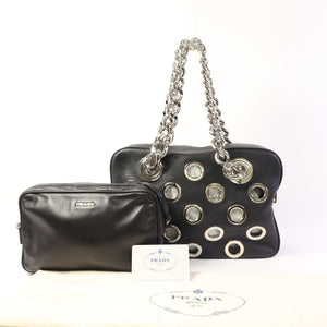 PRADA SHW Chain Shoulder Bag IBB017 Calfskin Leather Black