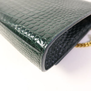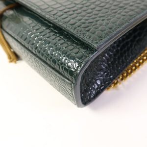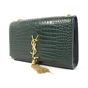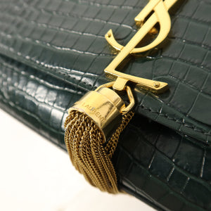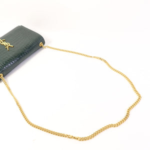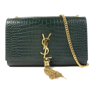 SAINT LAURENT YSL GHW Kate Chain Shoulder Bag 354119 Calfskin Leather Green