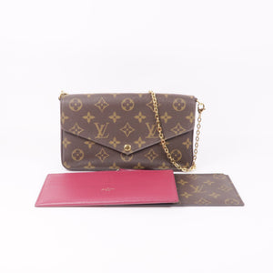 LOUIS VUITTON GHW Felicie Pochette Chain Shoulder Bag M81896 Monogram Brown Red