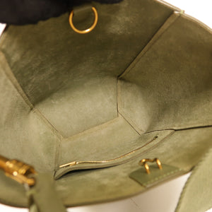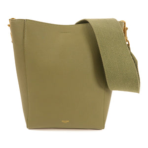CELINE Bucket Tote Shoulder Bag Calfskin Leather Oliver Green