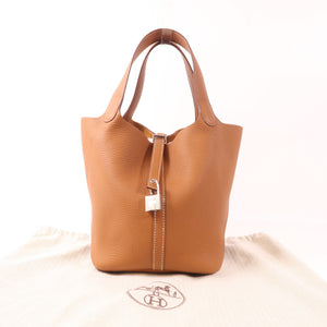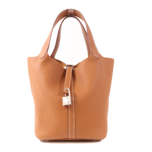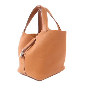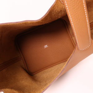 HERMES PHW Picotin MM Hand Bag Clemence Leather Gold