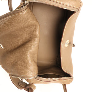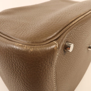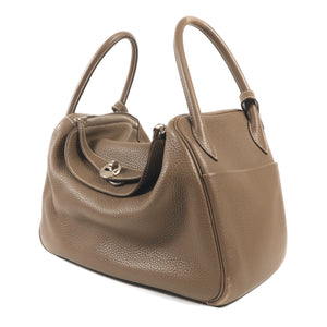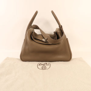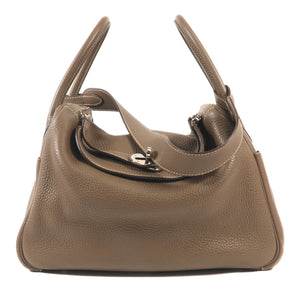 HERMES PHW Lindy 30 2 Way Bag Clemence Leather Etoupe