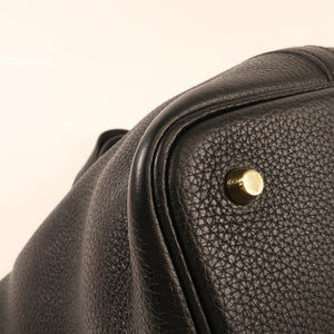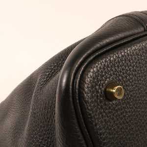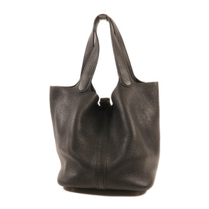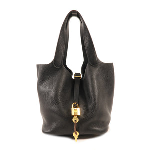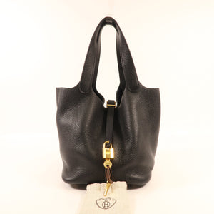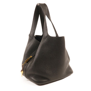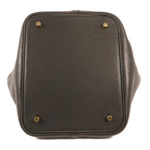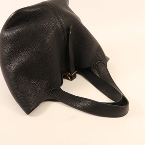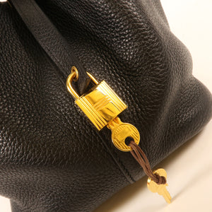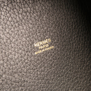 HERMES GHW Picotin MM Handbag Clemence Leather Noir