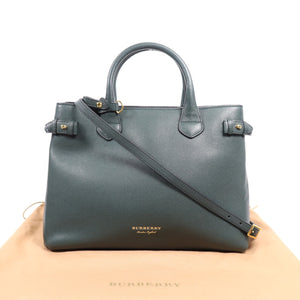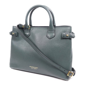 BURBERRY GHW 2 Way Shoulder Bag Calfskin Leather Green