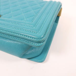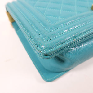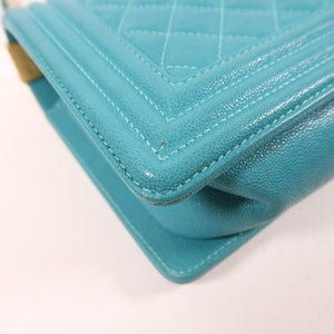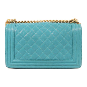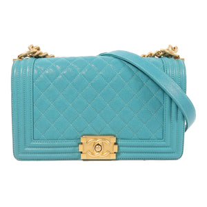 CHANEL CC GHW Boy 25 Chain Shoulder Bag Calfskin Leather Blue