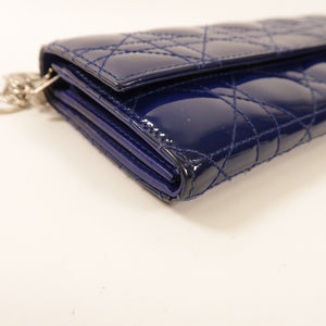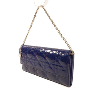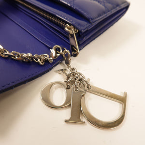Christian Dior CD SHW Lady Dior Handbag Pouch Patent Leather Blue