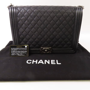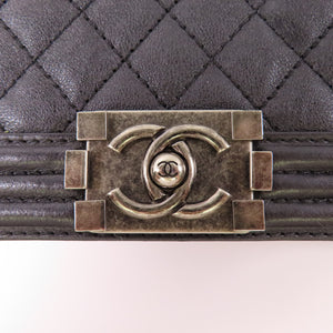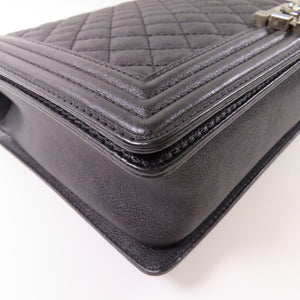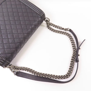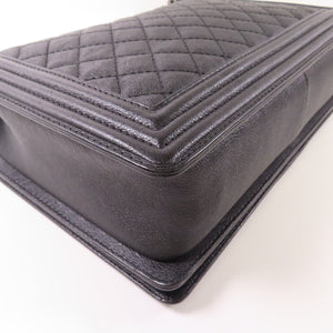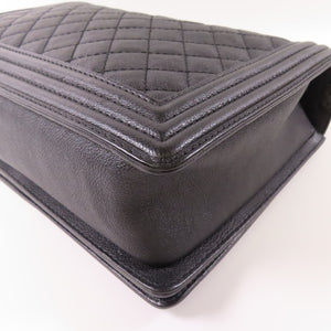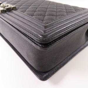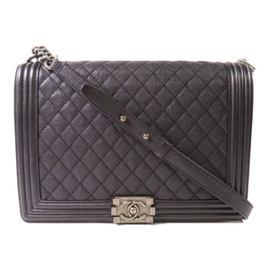 CHANEL CC Boy 28 Chain Shoulder Bag Calfskin Leather Black