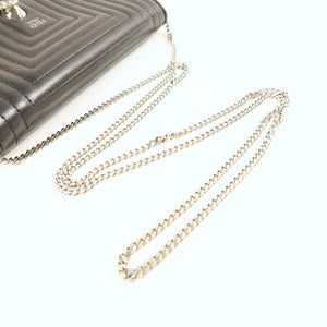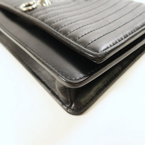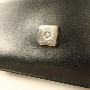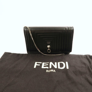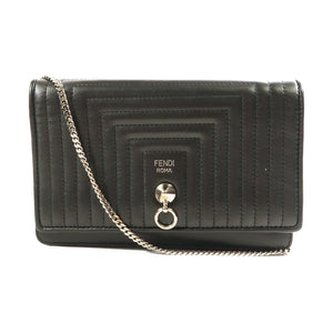 FENDI SHW Shiny Nappa Trapuntata Potom Wallet On Chain 8M0346 Calfskin Black