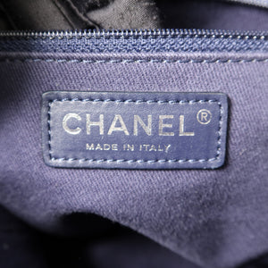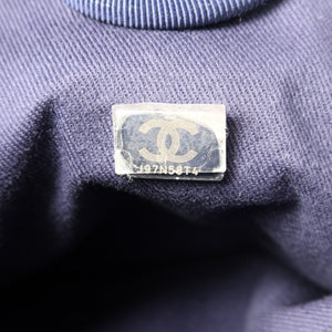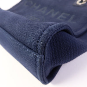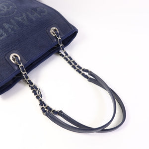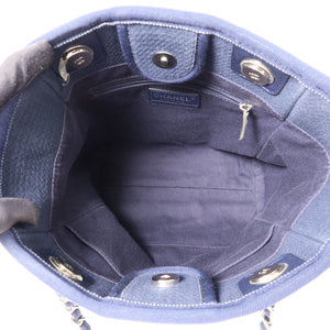 CHANEL CC SHW Deauville Tote Chain Shoulder Bag Canvas Navy Blue