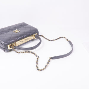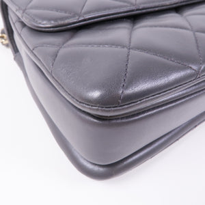 CHANEL CC GHW 2way Chain Shoulder Bag Lambskin Leather Grey