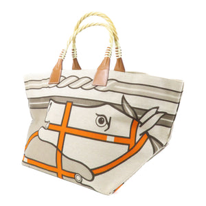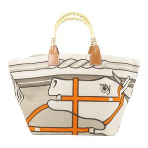 HERMES Steeple 28 Shoulder Bag Canvas Beige