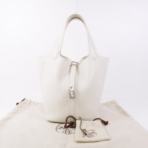 HERMES PHW Picotin MM Handbag Tote Bag Clemence Leather Blanc