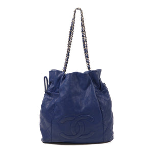 CHANEL CC SHW Chain Shoulder Bag Calfskin Leather Blue