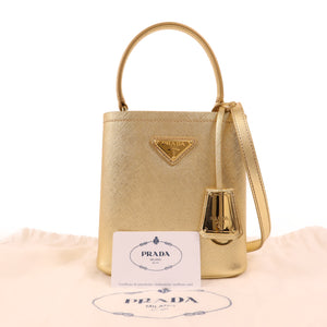 PRADA GHW Panier 2 Way Shoulder Bag Handbag 1BA373 Calfskin Leather Gold