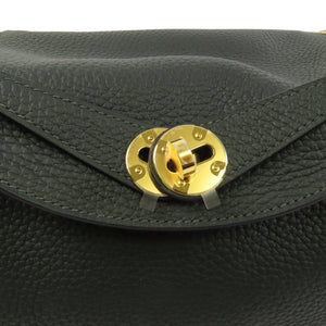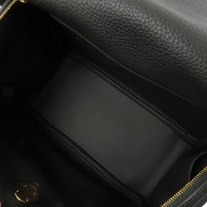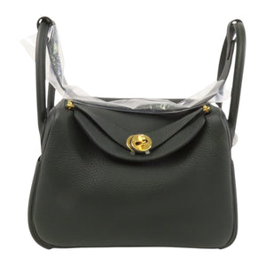 HERMES GHW Lindy 26 Shoulder Bag Clemence Leather 67 Vert fonce Dark Green