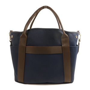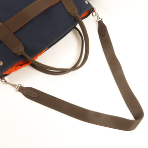 HERMES Sucked Pansage Groom Tote Bag 2 Way Shoulder Bag Canvas Blue