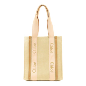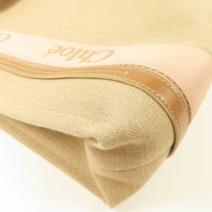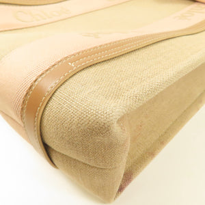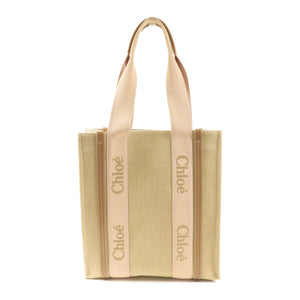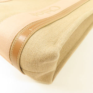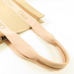 Chloe Woody Tote Bag Canvas Pink/Beige