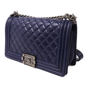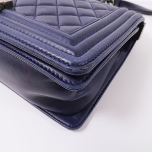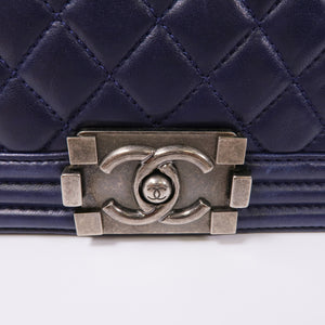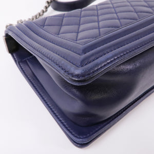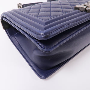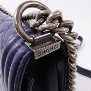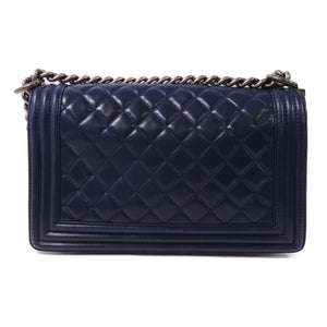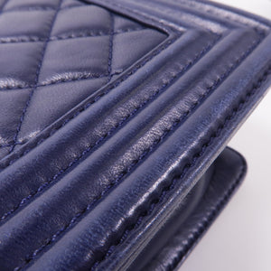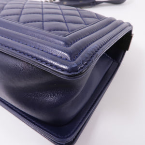 CHANEL CC Boy 25 Chain Shoulder Bag Lambskin Leather Navy