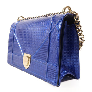Christian Dior CD GHW Diorama Shoulder Bag Patent Leather Blue