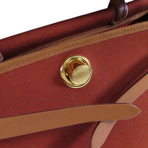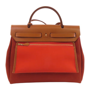 HERMES GHW Herbag PM Handbag Shoulder Bag Canvas 6C Cuivre Brown