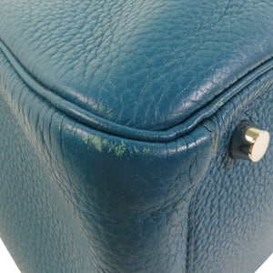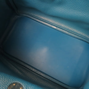 HERMES SHW Lindy 30 Shoulder Bag Clemence Leather 7B Turquoise Blue