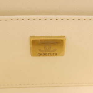 CHANEL CC GHW Evening Bag Chain Shoulder Bag Lambskin Leather White