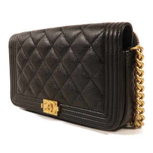 CHANEL CC GHW Boy WOC Wallet On Chain Shoulder Bag Calfskin Leather Black
