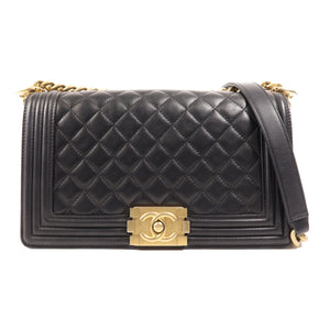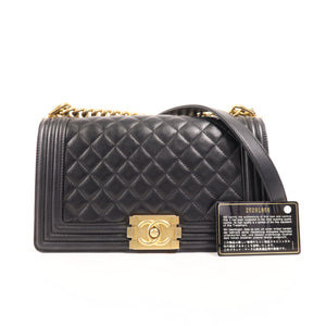 CHANEL CC GHW Boy 25 Shoulder Bag A67086 Calfskin Leather Black