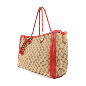 GUCCI GG GHW Bella Bamboo Tassel Shoulder Bag 269945 Canvas/Leather Brown/Red