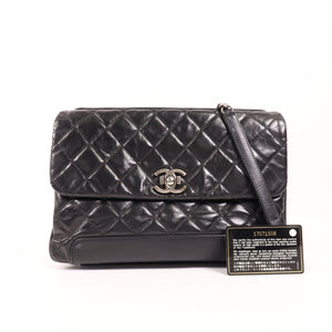 CHANEL CC SHW Chain Shoulder Bag Calfskin Leather Black