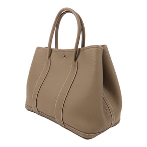 HERMES PHW Garden Party PM Handbag Negonda Leather Etoupe