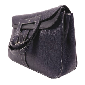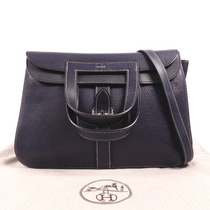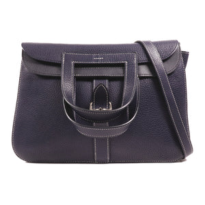 HERMES PHW Halzan 31 2 Way Shoulder Bag Handbag Clemence Leather Bleu Nuit