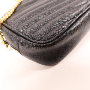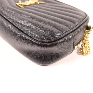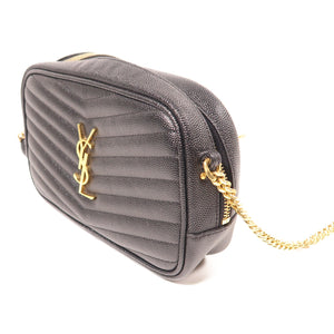 SAINT LAURENT YSL GHW Mini Lou Shoulder Bag Calfskin Leather Black