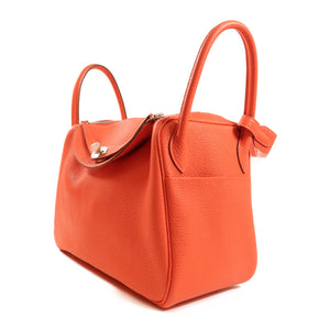 HERMES PHW Lindy 30 2 Way Shoulder Bag Handbag Clemence Leather Bougainvillier