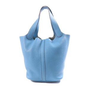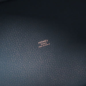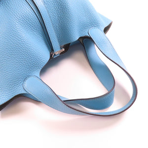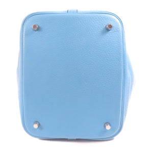 HERMES PHW Picotin MM Tote Bag Clemence Leather Stamp D P3 Bleu Du Nor Blue