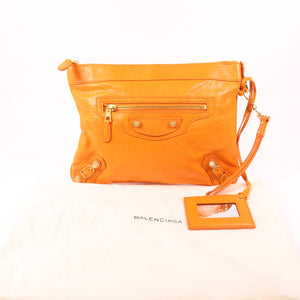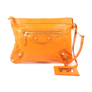BALENCIAGA GHW Clutch 299213-7510 Lambskin Leather Orange