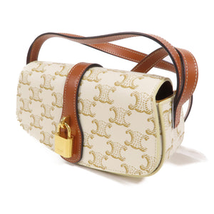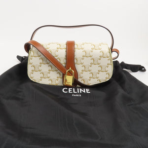CELINE GHW Tabou Bag 2way Shoulder Bag Coated Canvas White/Brown