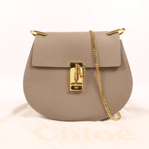 Chloe GHW Drew Bag Chain Shoulder Bag Calfskin Leather Grey