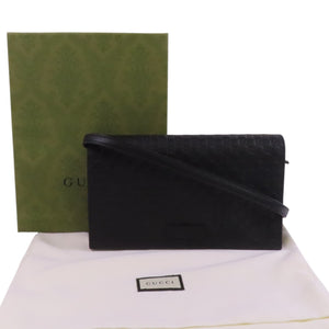 GUCCI GG GHW Wallet Shoulder Bag Crossbody 466507 Calfskin Leather Black