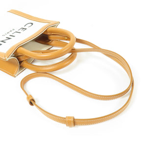 CELINE 2way Shoulder Bag Canvas/Leather White/Brown