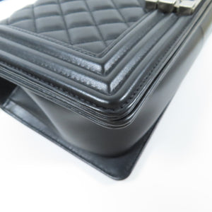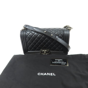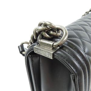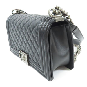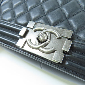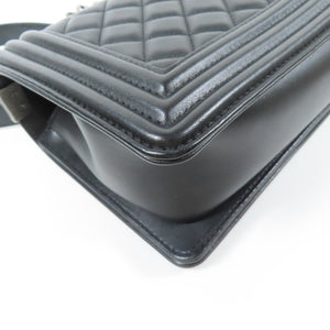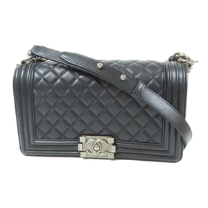 CHANEL CC Boy 25 Chain Shoulder Bag Lambskin Leather Black