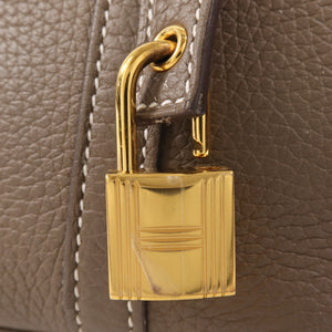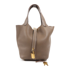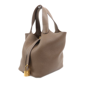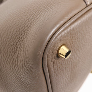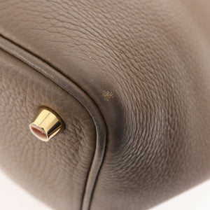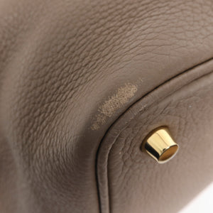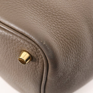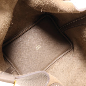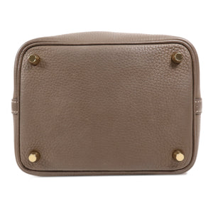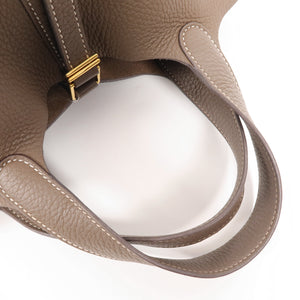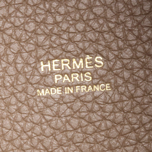HERMES GHW Picotin PM Handbag Clemence Leather Etoupe