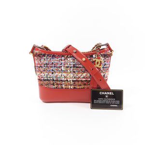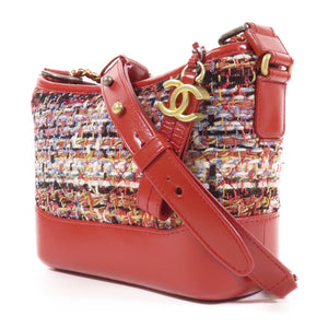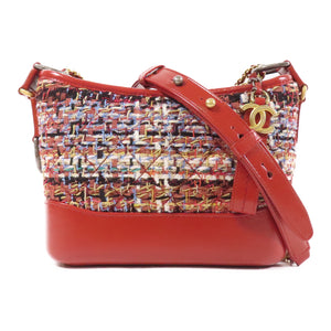 CHANEL CC Gabrielle Chain Shoulder Bag Tweed/Leather Red
